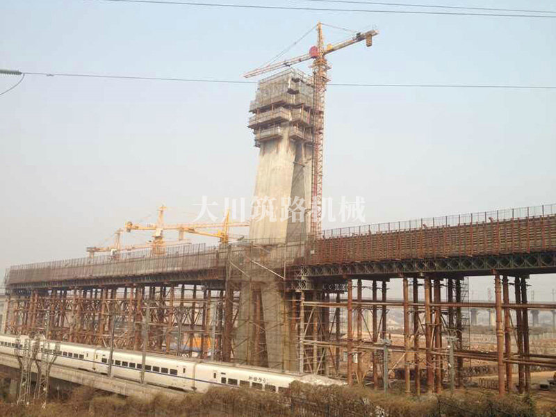 特點(diǎn):因滬昆高鐵跨過武廣高鐵,為了減少對(duì)武方高鐵的正常運(yùn)行,主梁和武方高鐵平行澆筑,然后懸轉(zhuǎn)跨越武廣高鐵,在當(dāng)時(shí)引起全國同行關(guān)注。使用的貝雷片數(shù)量達(dá)到2000片以上,于2011年12月投入使用。